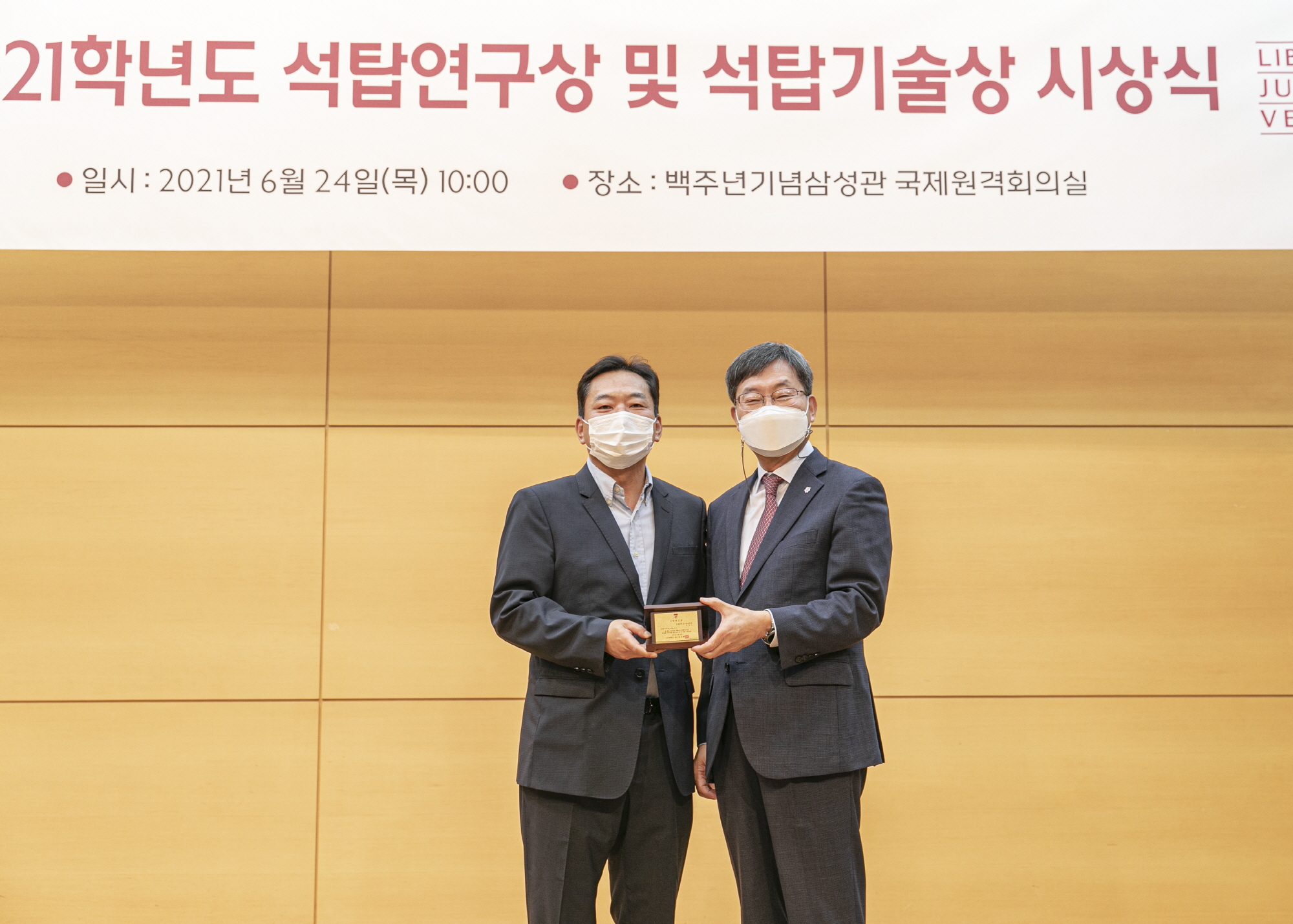 석탑연구상은 전년도 연구업적 중 상위 3%를 차지한 교원에게 수여하는 상으로, 매년 고려대 개교기념일(5월 5일) 행사에서 관련 시상식을 진행한다.