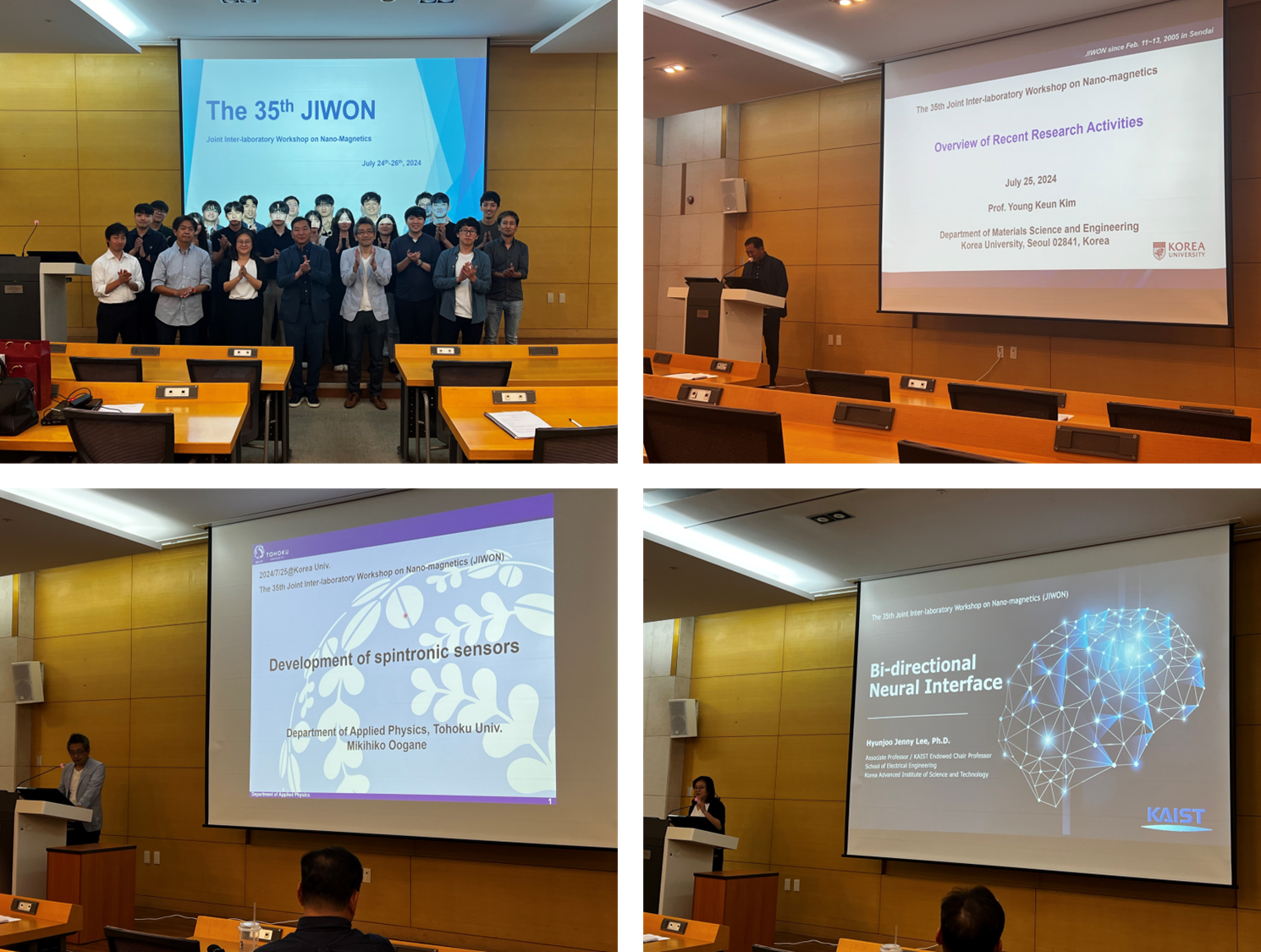 대학원생 부홍은, 정은진, 이태윤, 문지성이 2025년 10월 29일부터 31일 광주 김대중 컨벤션 센터에서 개최된 추계 대한금속재료학회에 참석했다. 발표자로 초대받은 김영근 교수는 나노융합 특별세션에서 Spin-selective transport through chiral ferromagnetic nanohelices 를 주제로 발표했다.
