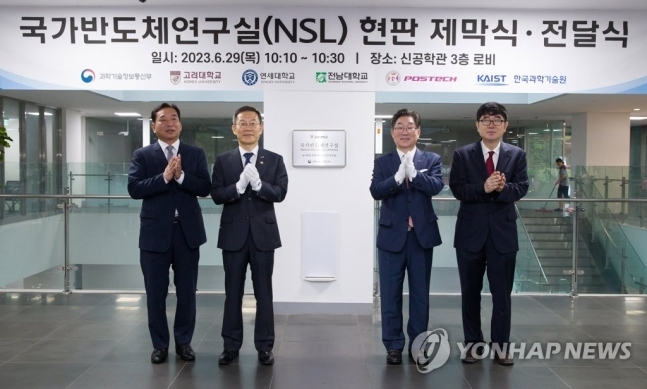 Minister of Science and ICT Jongho Lee attended the 'National Semiconductor Laboratory designation ceremony' held at Korea University in Seoul on June 29, along with Korea University President Dongwon Kim and officials