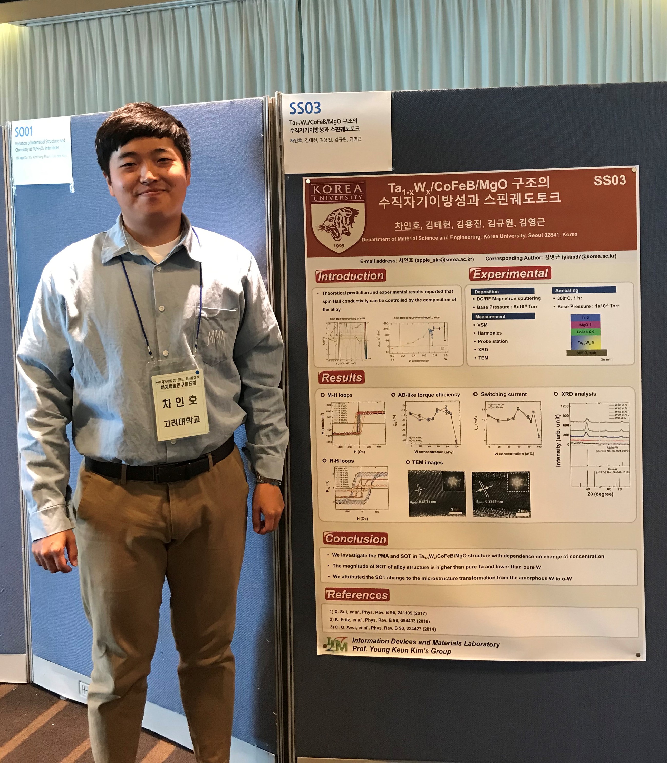 - 차인호 (Poster) : Ta1-xWx/CoFeB/MgO 수직자기이방성과 스핀궤도토크