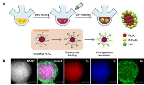 연구진은 산화철(Fe3O4) 메조결정에 폴리아크릴레이트 (polyacrylate)를 코팅하여 고분자 중합 유도 성장을 이용하여 산화철(Fe3O4), 아연페라이트(ZnFe2O4), 산화아연(ZnO) 세 가지 종류의 단위결정으로 구성된 다성분 메조결정 나노입자를 합성했다.