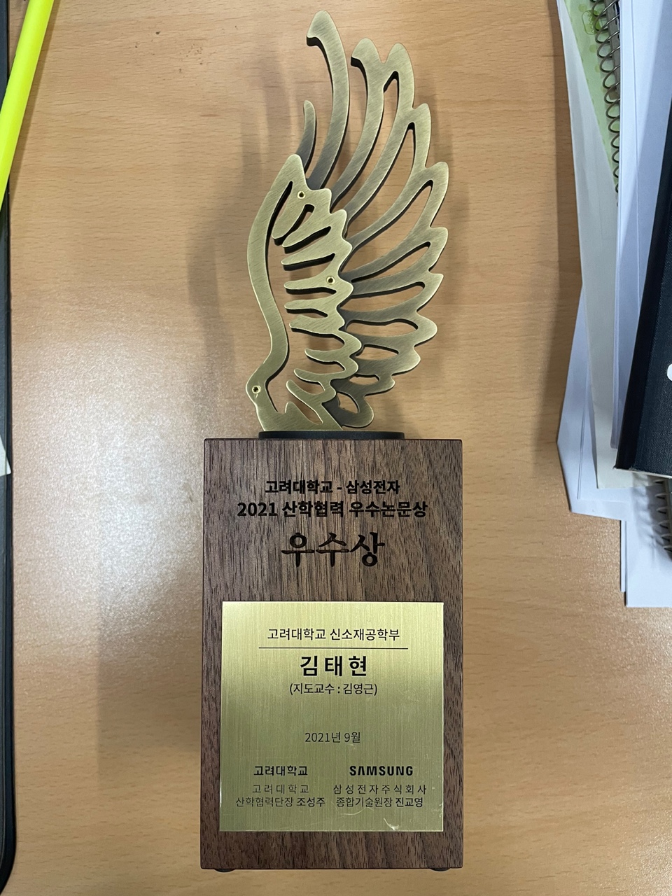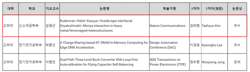 고려대학교 김영근 교수팀의 대학원생 김태현이 고려대-삼성전자 우수논문상을 수상하였다.