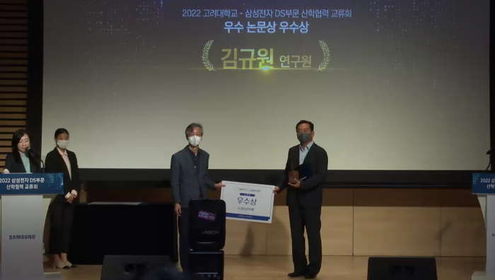 고려대학교 김영근 교수팀의 대학원생 김규원이 고려대-삼성전자 산학협력 우수논문상을 수상하였다.