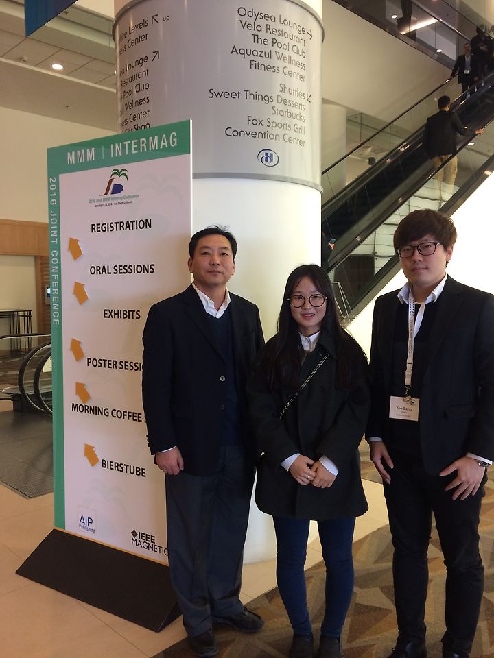 A unified master's & doctor's course candidate, Y. S. Jeon, a mater's course candidate Jin Suyue and Prof. Kim attended '2016 Joint MMM Conference' held in San Diego USA on Jan. 11 ~ 15, 2016.
