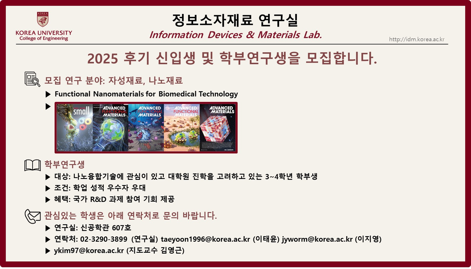 공지 2025 후기 신입생 및 학부연구생 모집 공고 Jinseo Lee 2022. 3. 23. 11:37 고려대학교 대학원 2025학년도 후기 입학전형 안내https://graduate.korea.ac.kr/matriculate/schedule.html 고려대학교 일반대학원 창의적 미래 인재를 양성하고 세계를 변화시키는 연구중심대학, 고려대학교 일반대학원 graduate.korea.ac.kr